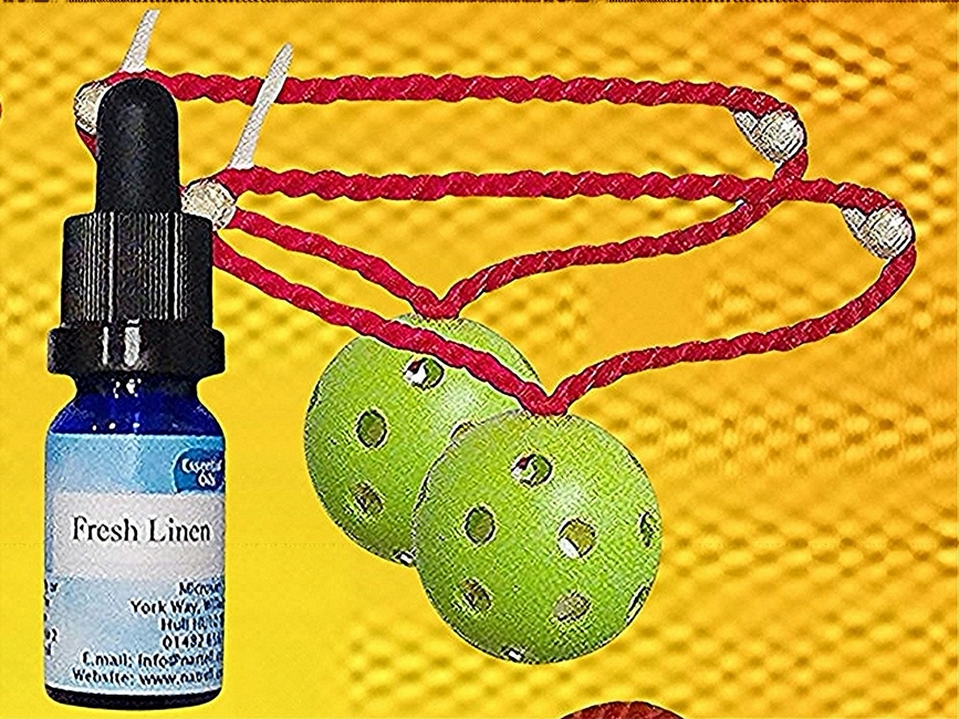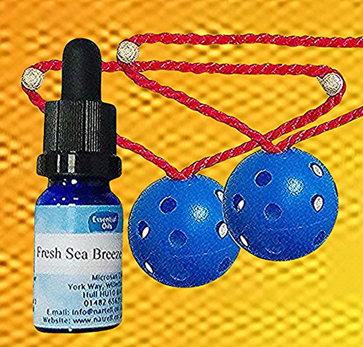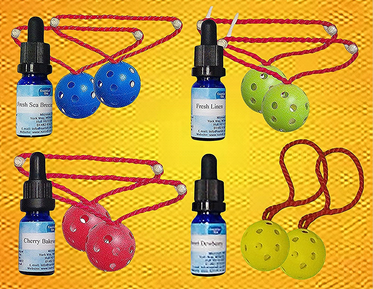 2 Deodorant Balls, complete with a 10ml bottle of replenishing oil. With handy cord hangers.
