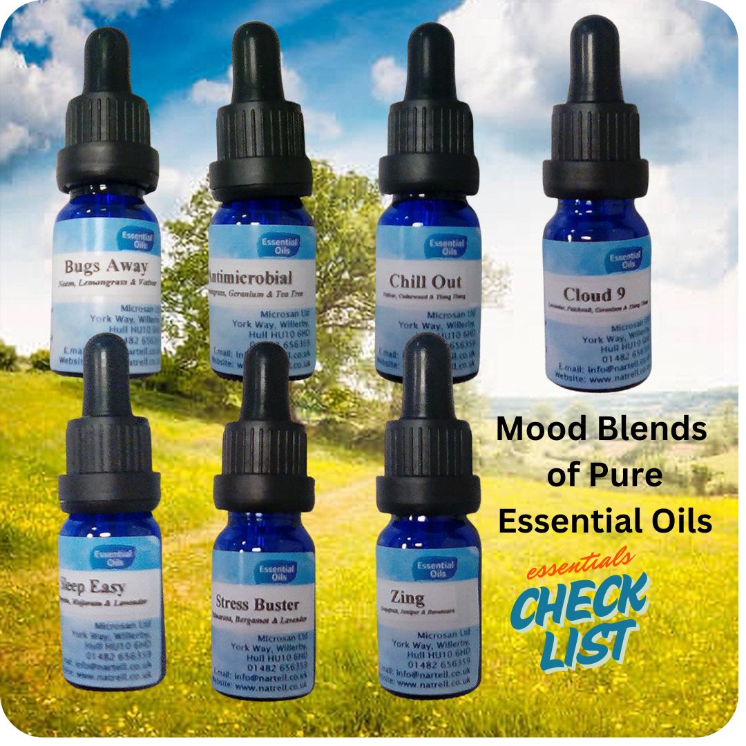 | Mood Oil Blend | Bugs-Away10ml, Bugs-Away 50ml, Chill-Out 10ml, Chill-Out 50ml, Zing 10ml, Zing 50ml, Sleep-Easy 10ml, Sleep-Easy 50ml, Stress-Buster 10ml, Stress-Buster 50ml, Cloud-Nine 10ml, Cloud-Nine 50ml, Anti-Microbial 10ml, Anti-Microbial 50ml |