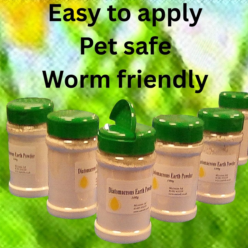 100g of Diatomaceous Earth Powder in handy sprinkle/spice bottle.